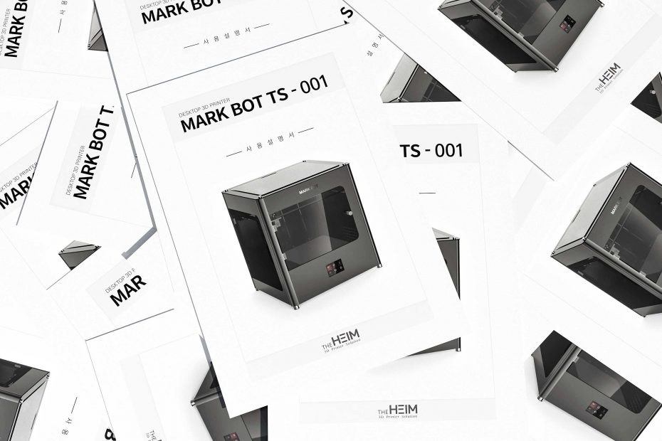 3D 프린터의 기본 사양, 설치 가이드, 상세 기능 설명이 포함되는 간략하지만 필수적인 내용의 메뉴얼. 가정용 프린터기를 사용해서 출력 가능한, 저비용으로 제작 가능해야 함. A4 사이즈를 반으로 접은 중철.