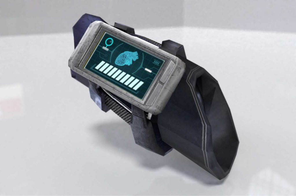 VR 게임에 사용된 아이템박스와 손목 HP게이지