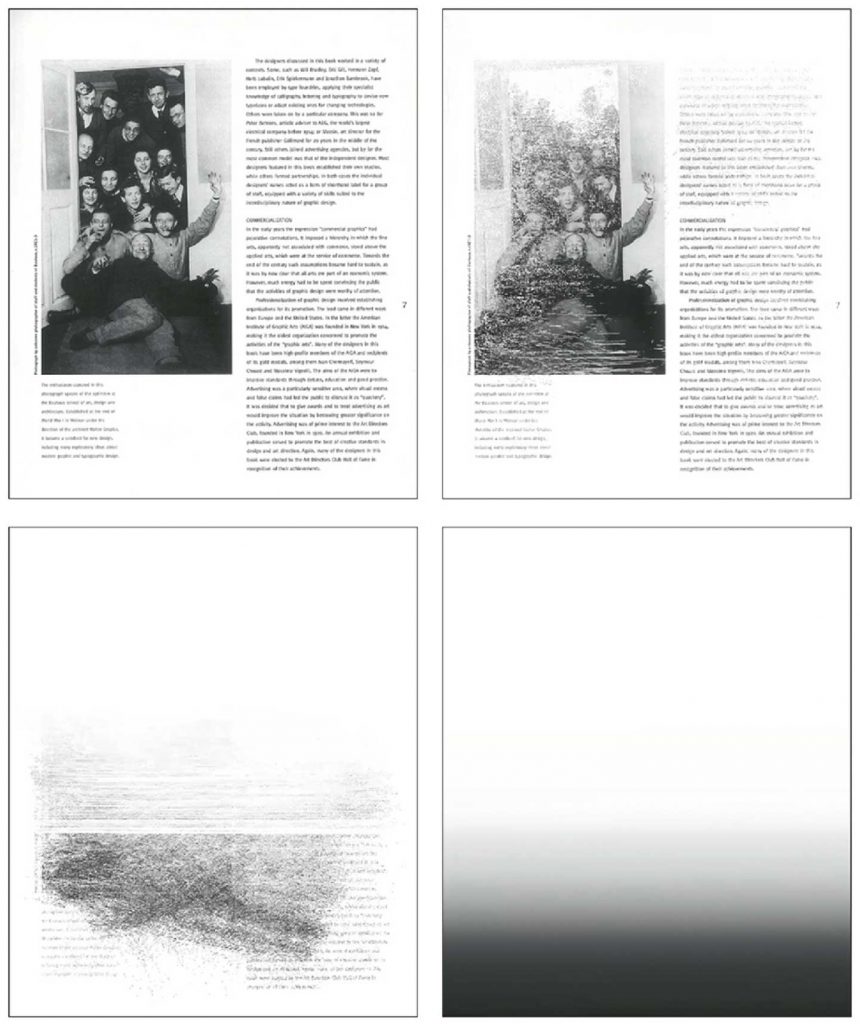 “<또 다른 관점>은 인쇄업자의 관점에서 본 디자인을 극단적으로 표현한 것이다. 인쇄된 잉크가 무거운 색상을 우선적으로 아래쪽부터 차곡차곡 쌓이게 하면 디자인 작업에 사용된 잉크의 양을 파악하기에 용이하다. 인쇄업자가 매일 마주하는 인쇄된 매체들은 단지 집결된 잉크의 덩어리일 뿐이다.”