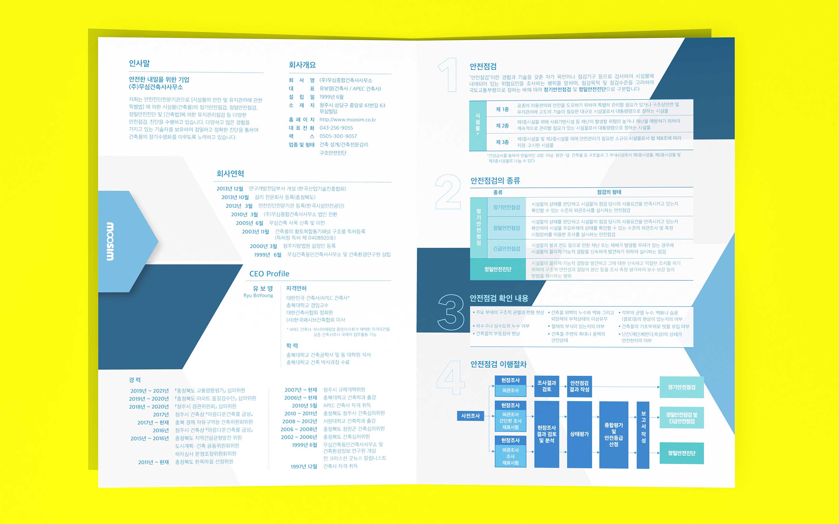 (주)무심종합건축사사무소의 시설물 안전점검에 대한 안내 브로셔