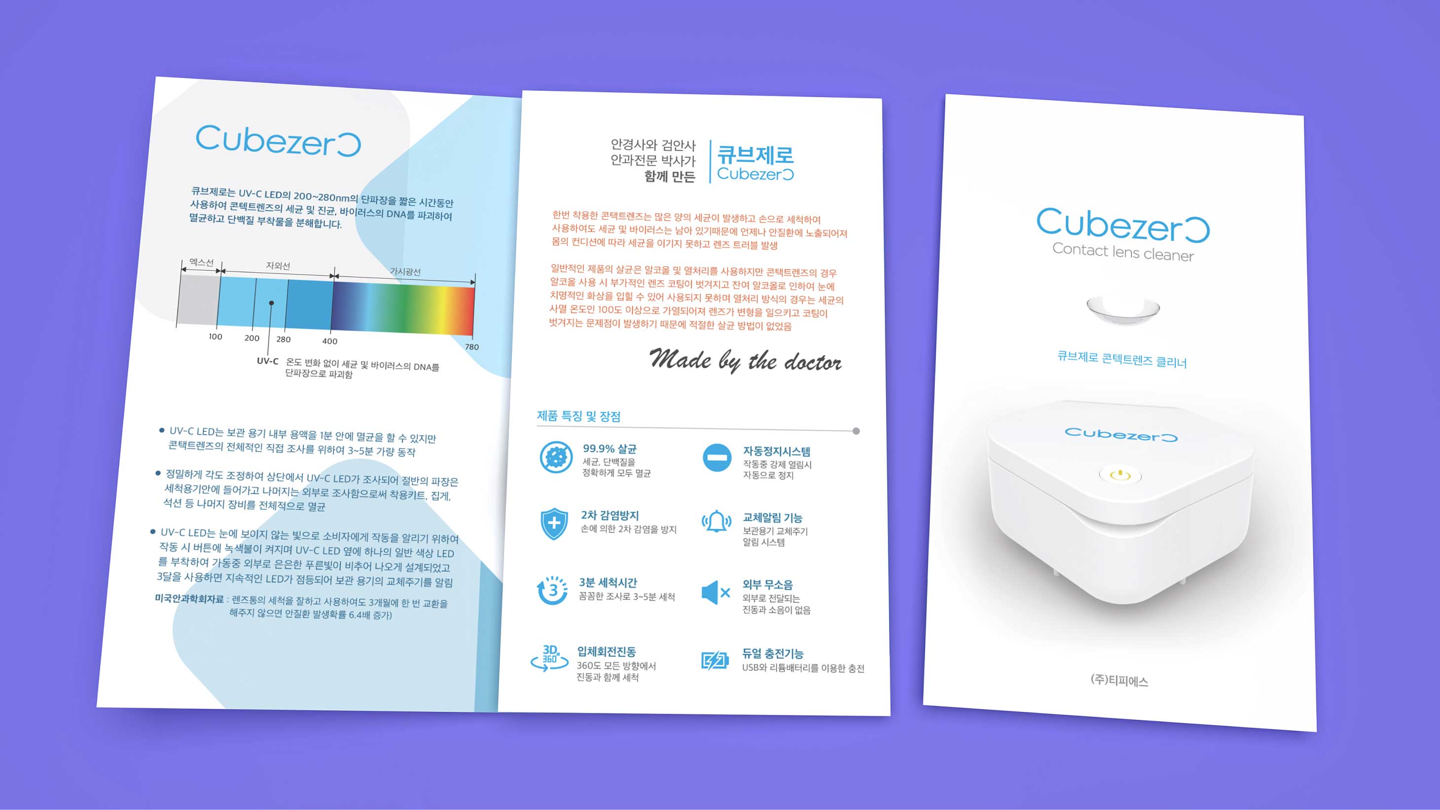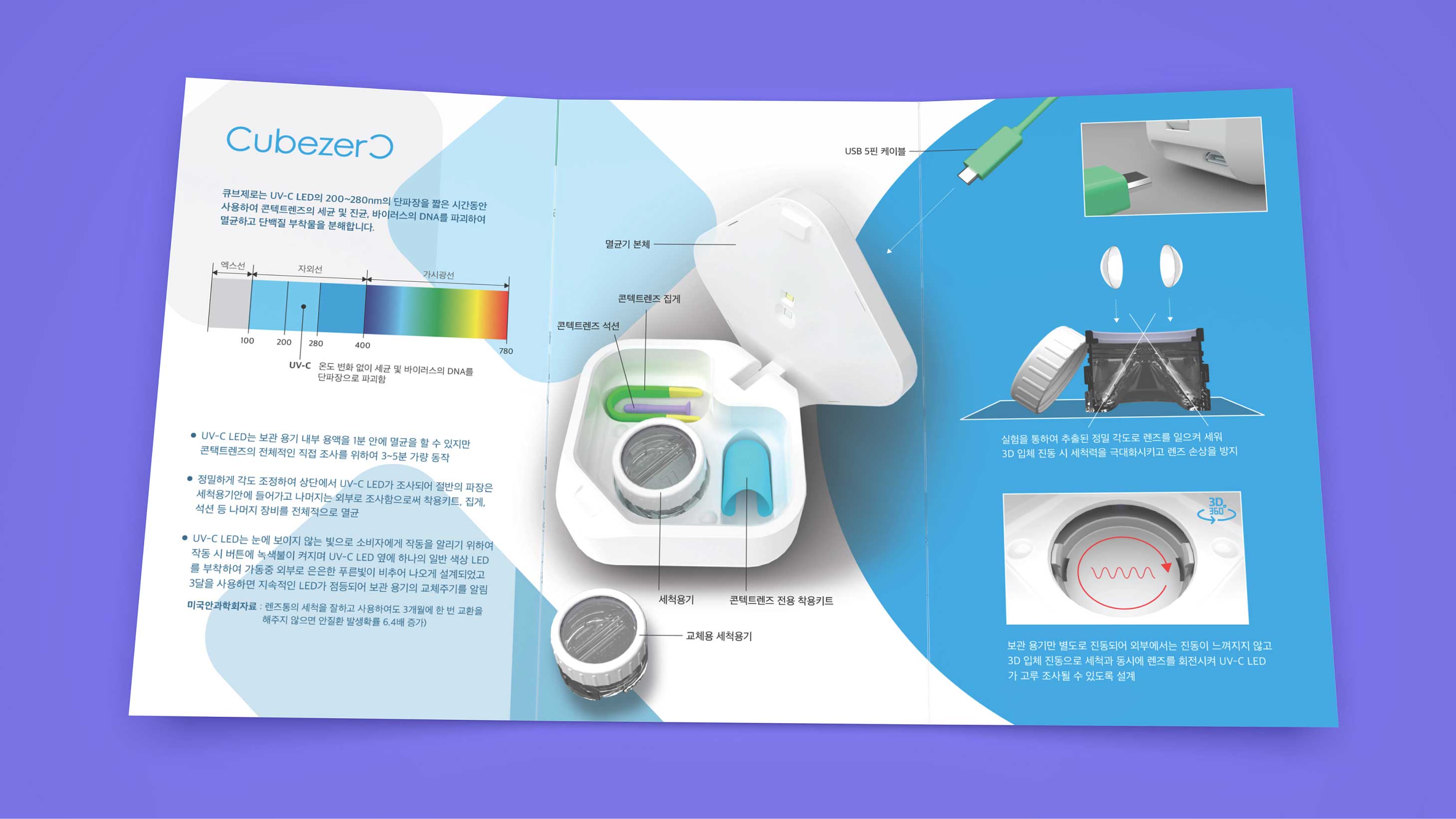 (주)티피에스의 콘텍트렌즈 세척기의 컨셉과 특징을 표현하고 설명함