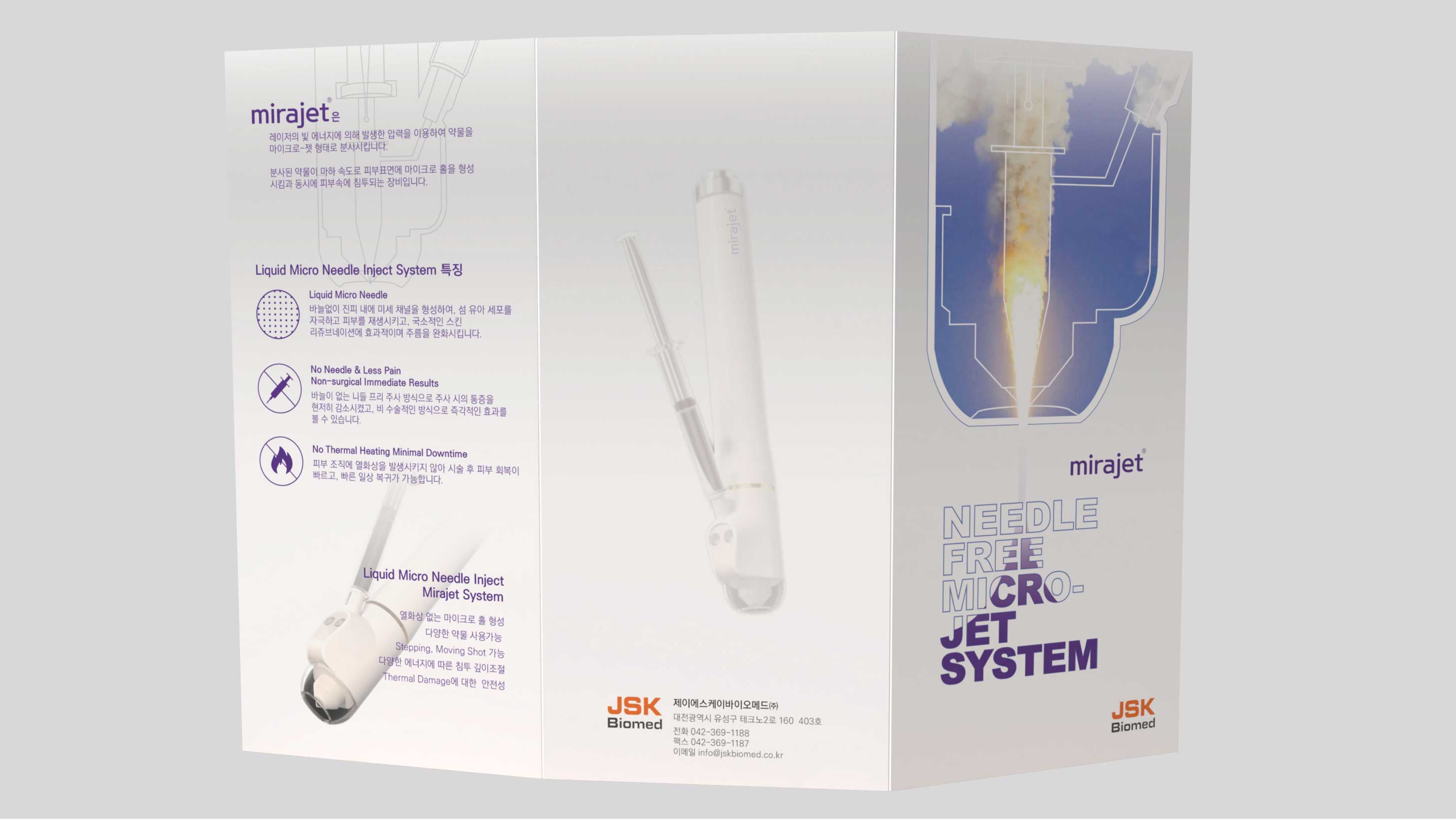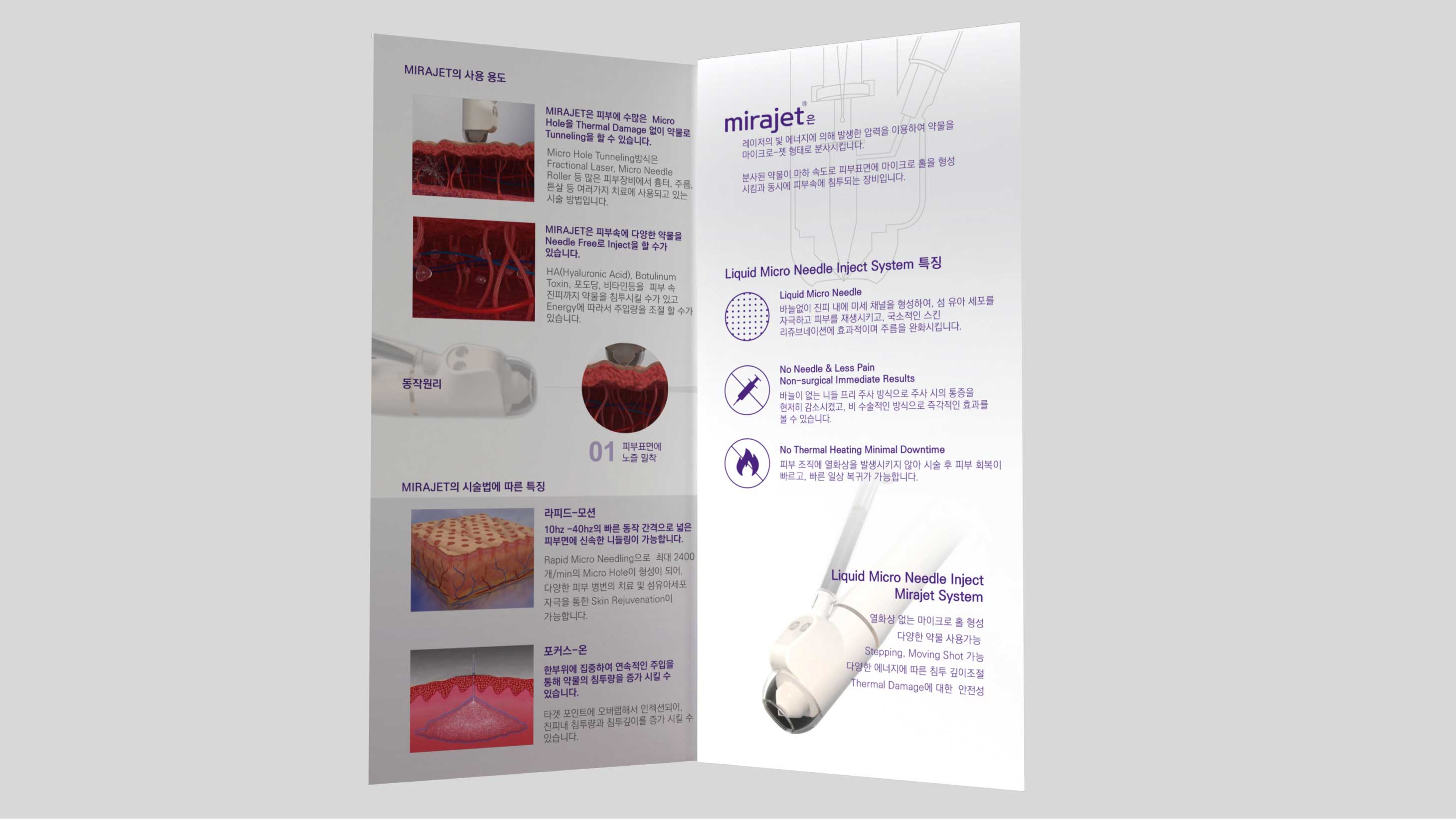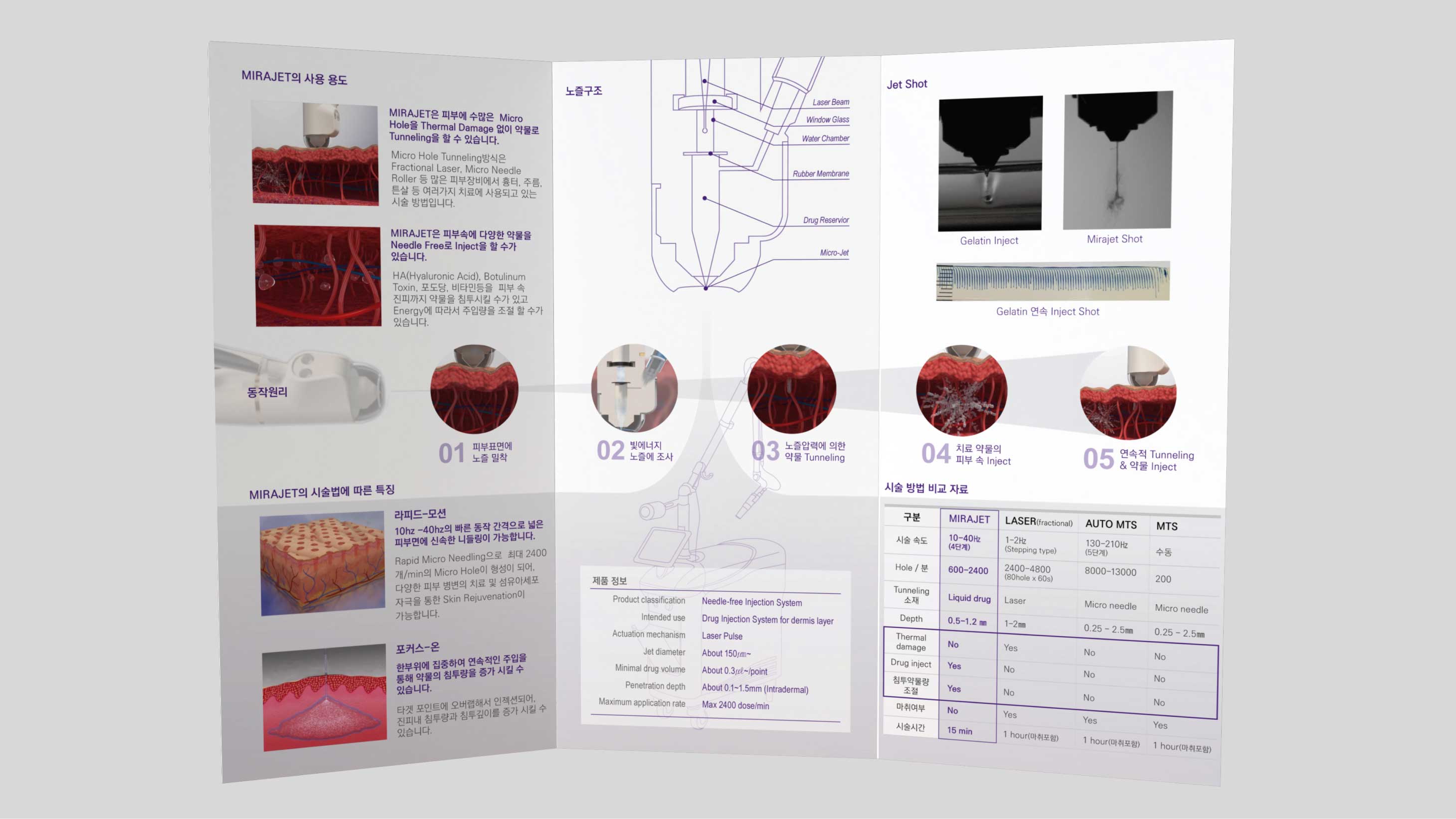 바늘없는 주사기 미라젯의 컨셉과 특징을 표현하고 설명함