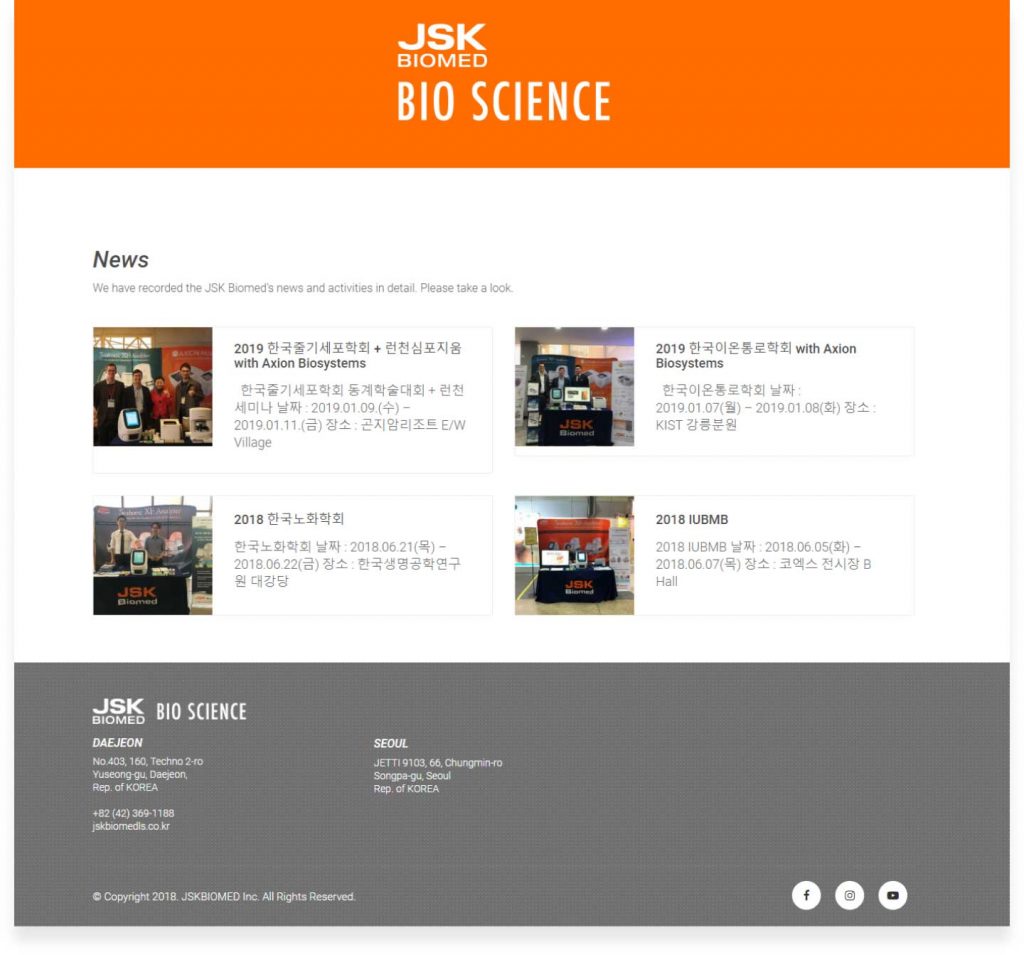 다양한 제품군과 관련 기술을 상세히 설명하는 홈페이지