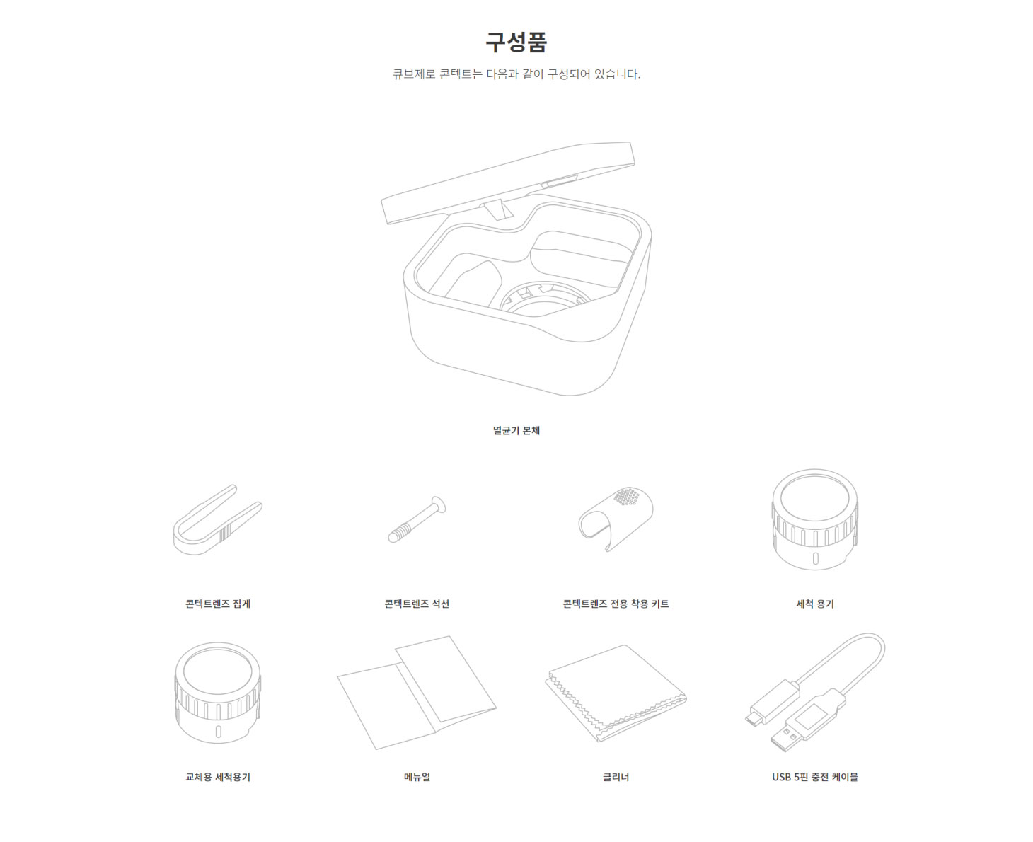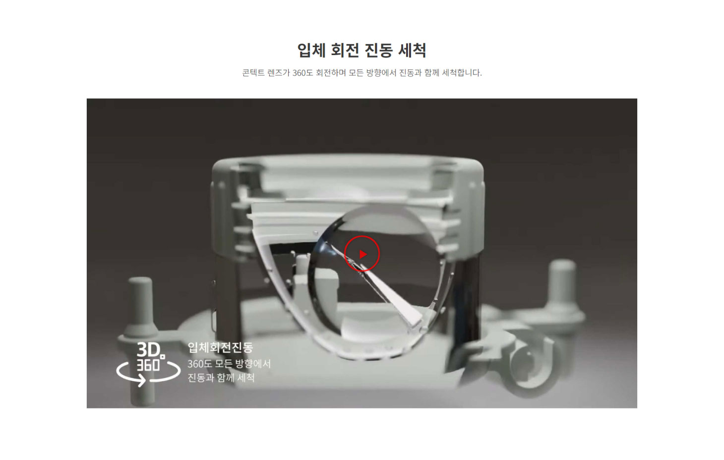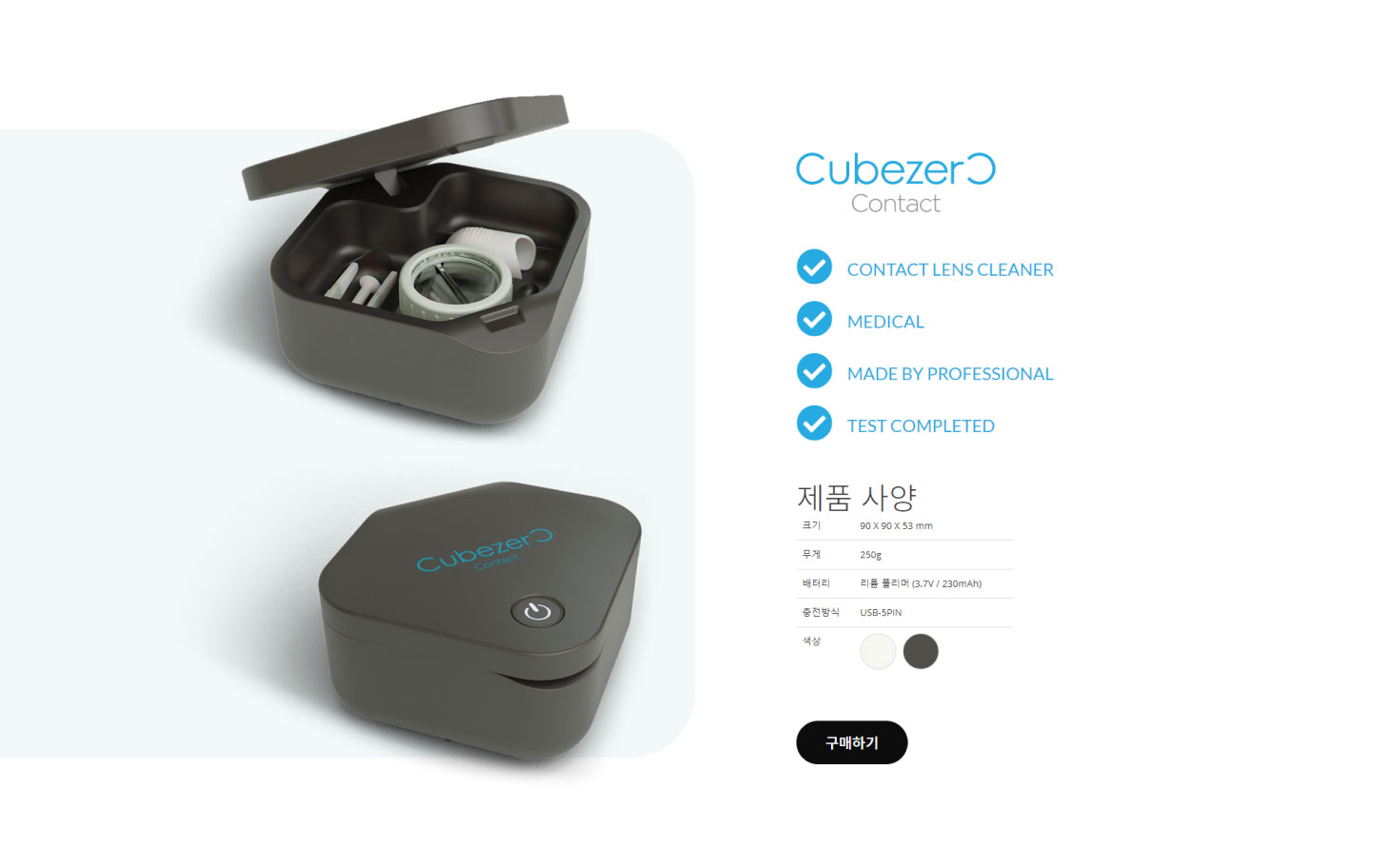 콘텍트렌즈 세척기의 컨셉과 특징을 설명하는 원 페이지 홈페이지