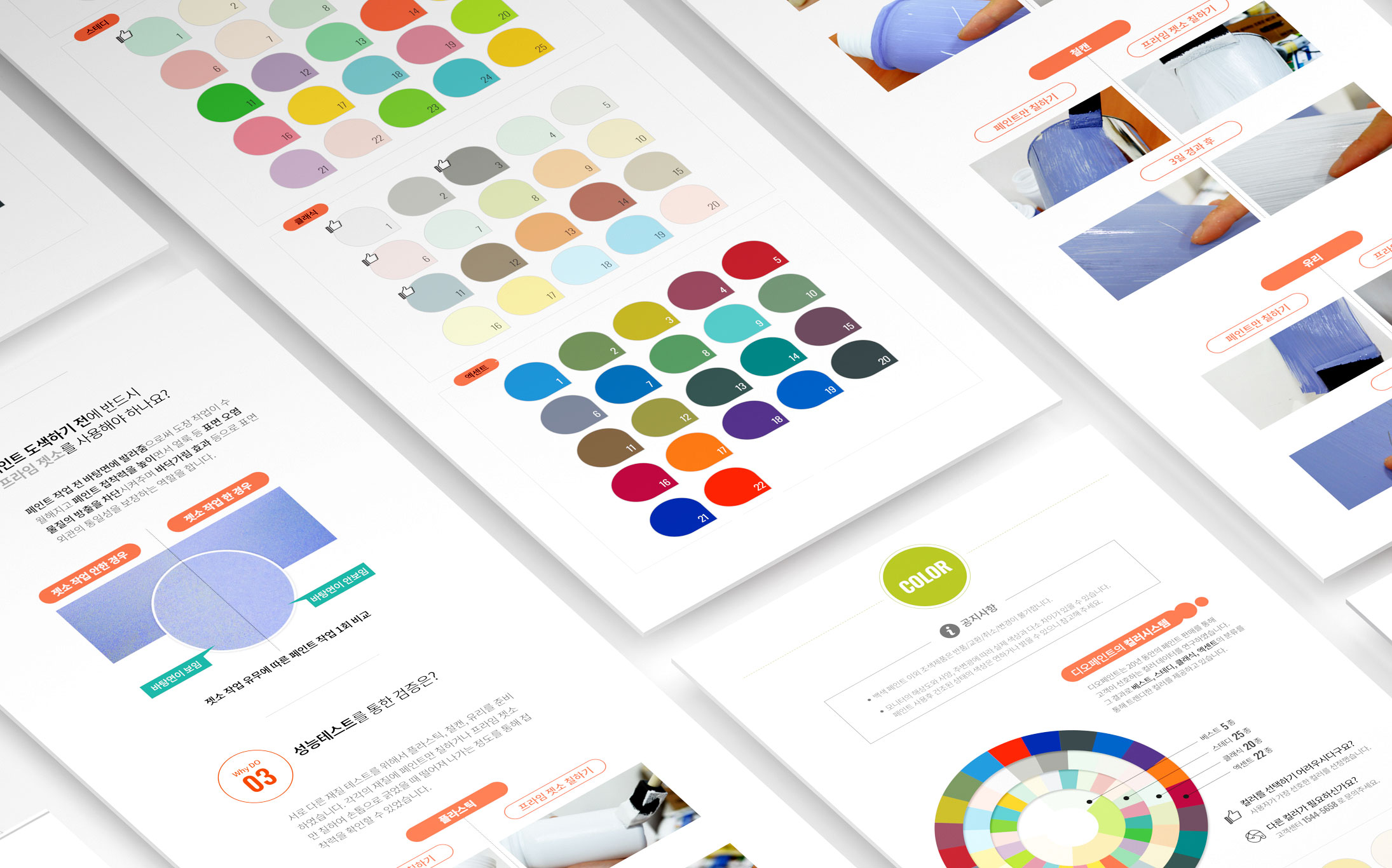 ”각 제품들의 개별 특성은 표현하되 통일성은 유지될 수 있도록 하는 것이 핵심이다. 특히 페인트가 주요 제품이기 때문에 페인트 색상을 명료하게 파악할 수 있도록 구성하고, 제품의 용도와 사용 방법을 잘 이해할 수 있도록 신경썼다.”