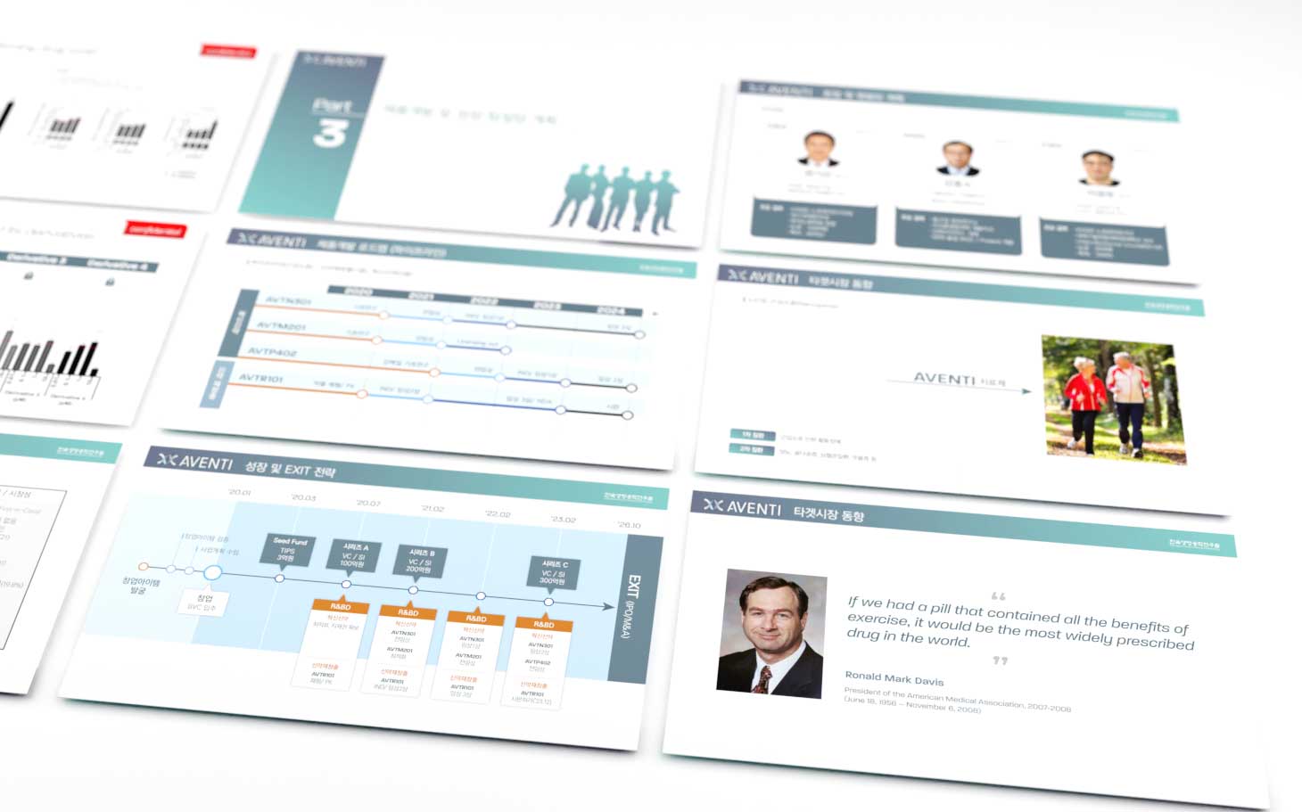 "모든 페이지를 관통하는 일관성을 통해 투자자로부터 신뢰감을 줄 수 있다. 전문적이고 고도화된 기술을 설명해야 하기 때문에 간결하면서도 가볍지 않아야 한다."