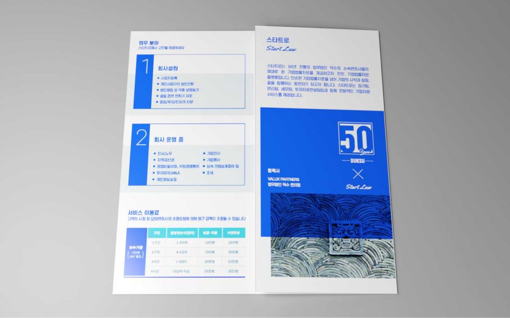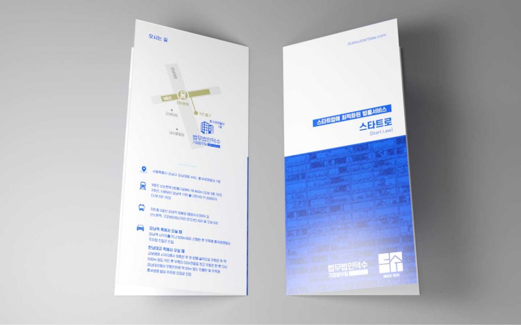 법무법인덕수의 기업법률자문 플랫폼인 스타트로의 홍보 리플렛