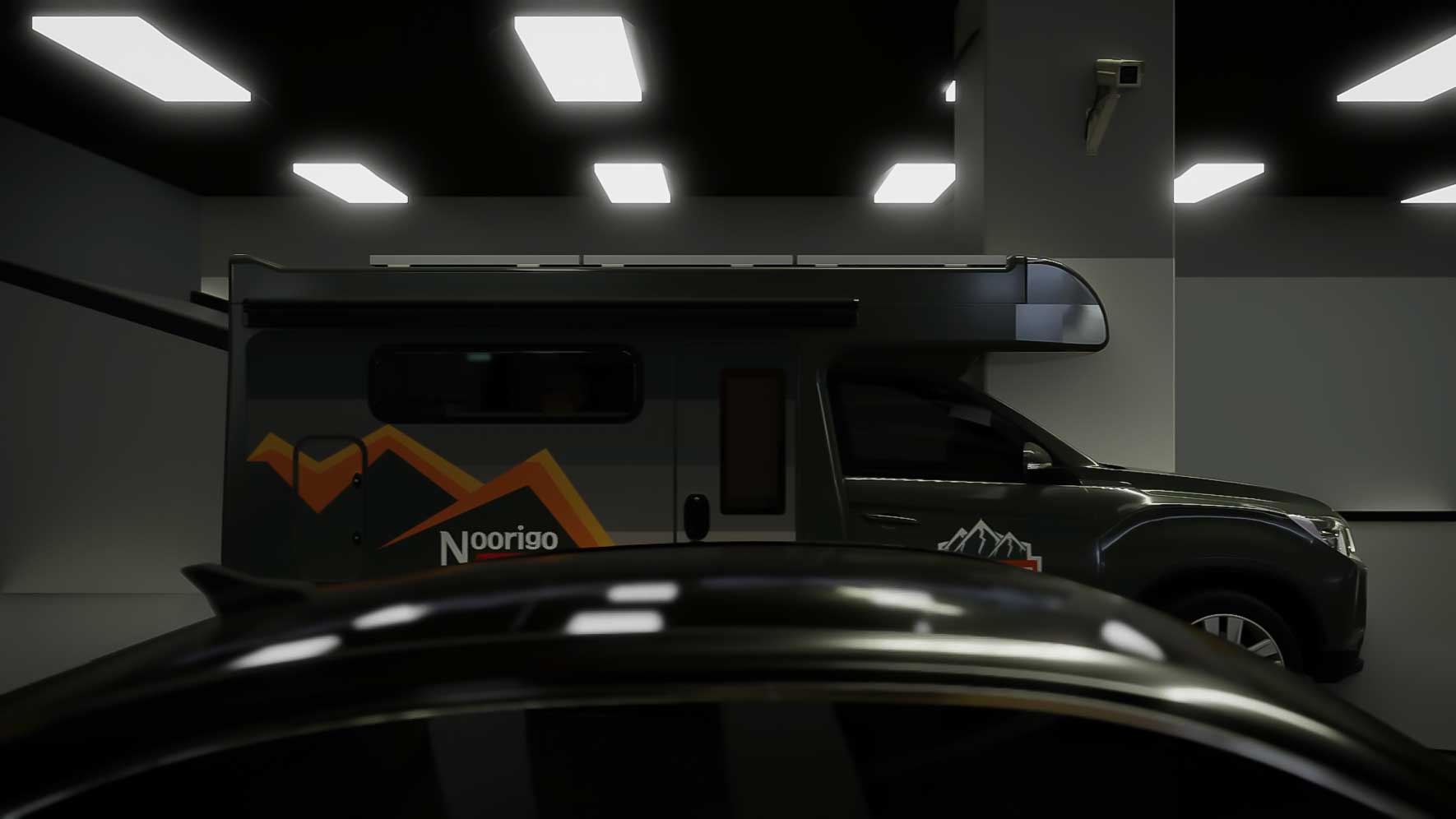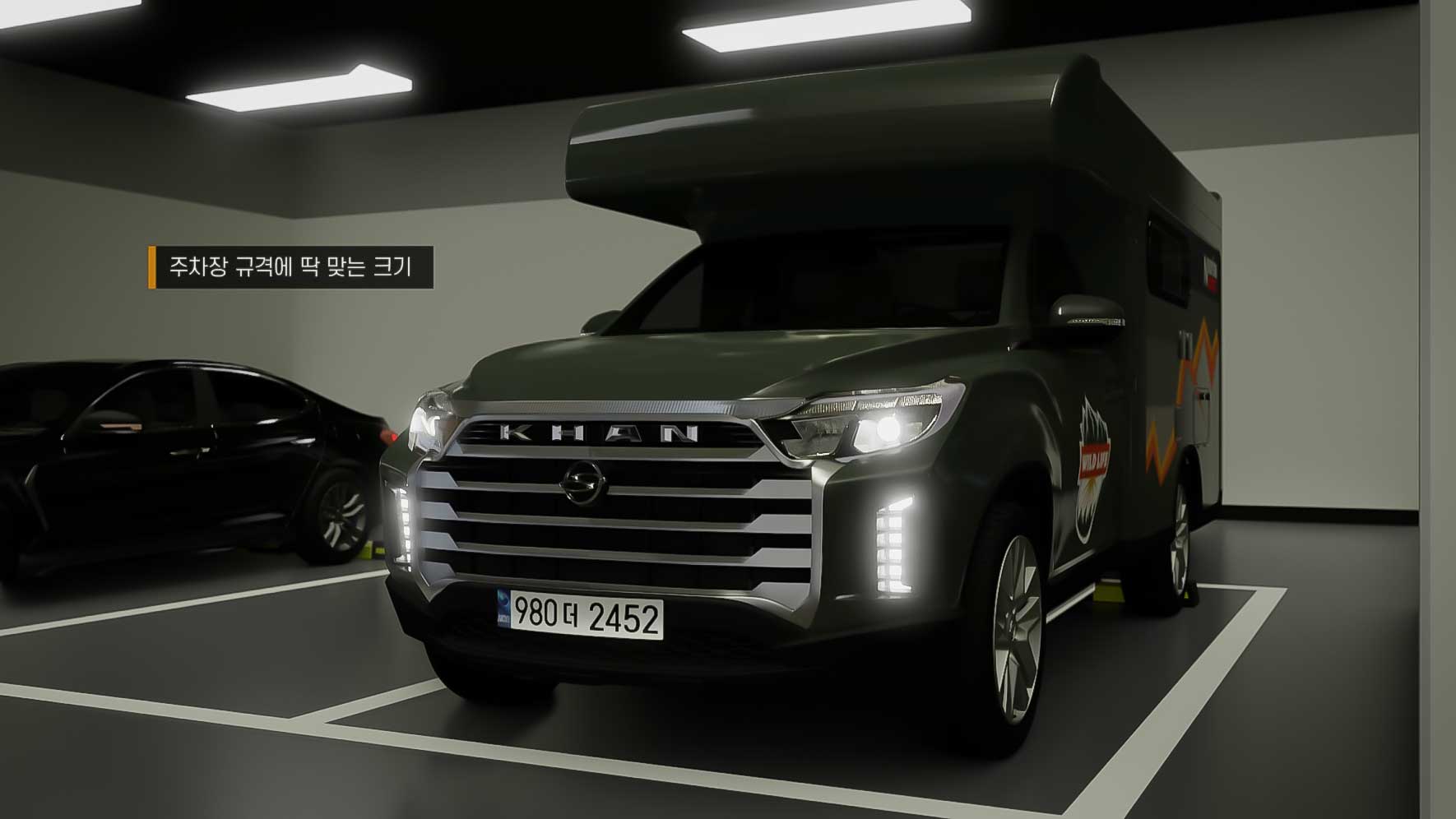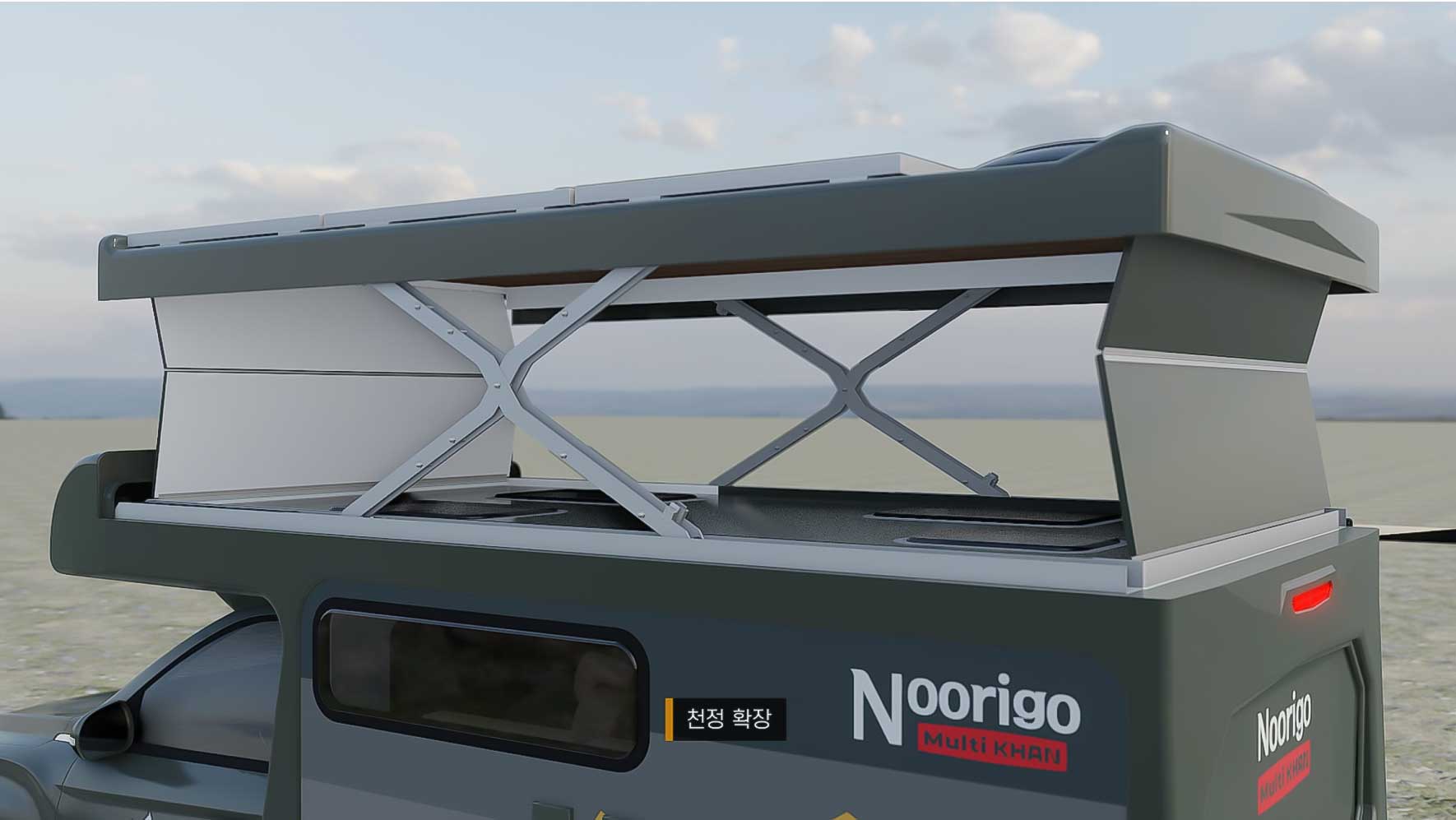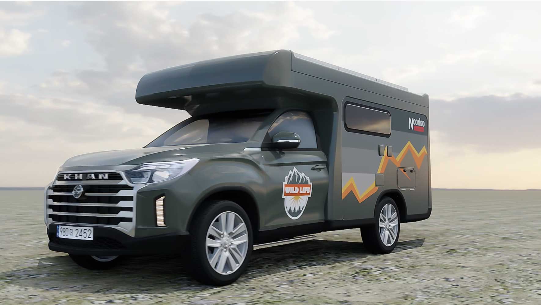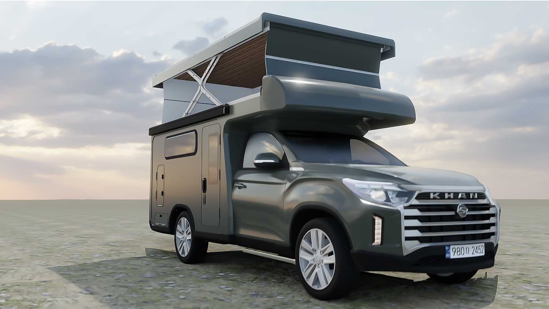 누리고캠핑카는 캠핑카의 고질적인 단점인 지하주차장 이용 불가능성을 개선하는 새로운 제품을 개발하였습니다. 칸스포츠 차량을 베이스로 한 천정 확장형 캠핑카입니다. 주차장 사이즈에 딱 맞는 전폭, 전장. 입구를 통화할 수 있는 전고를 갖고 있습니다. 시제품이 나오기 전에 멀티칸의 새로운 기능을 보여주는 3D영상을 제작하였습니다. 사진자료를 전적으로 참고하여 모델링, 텍스처링 작업을 하였습니다.