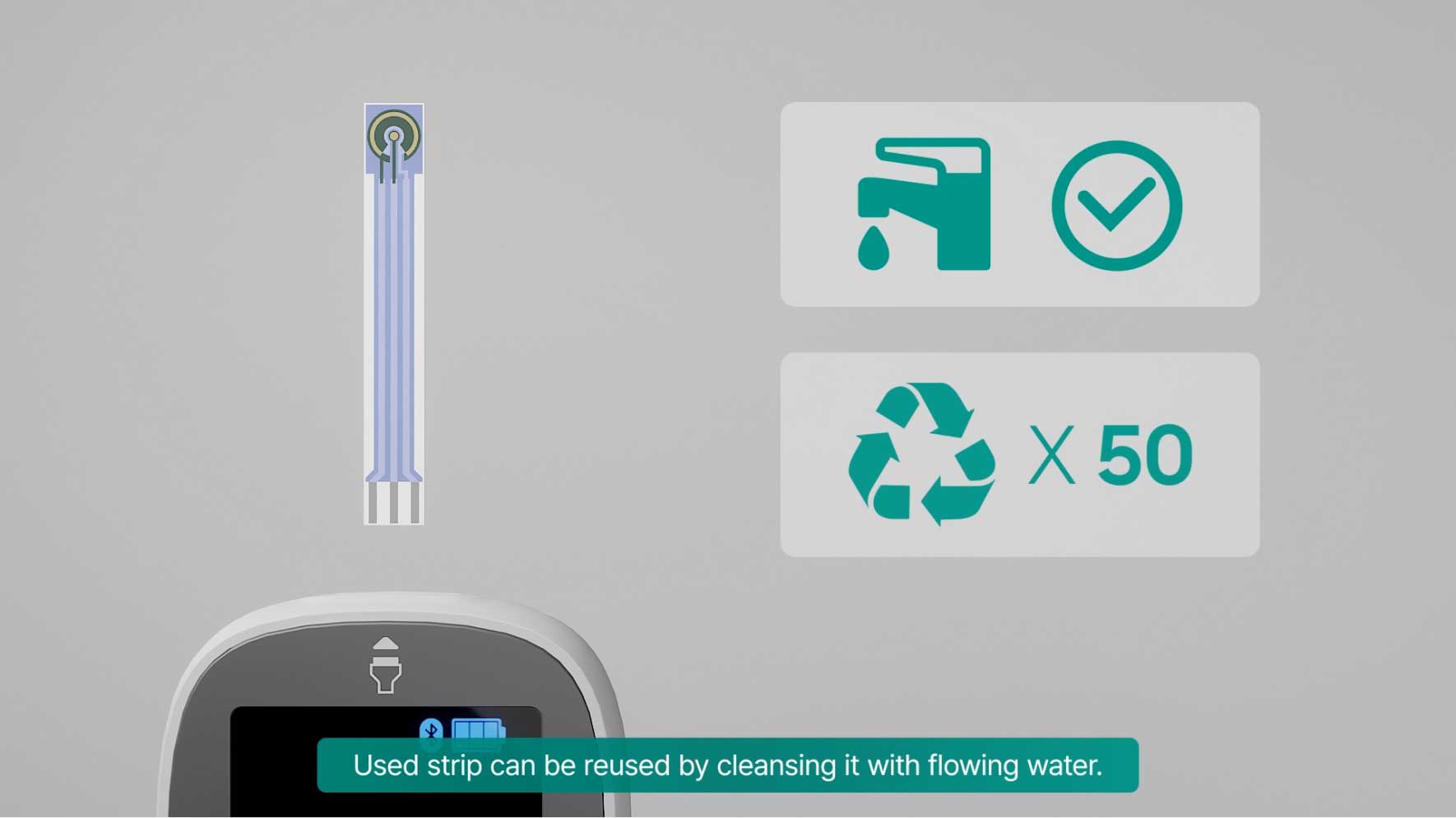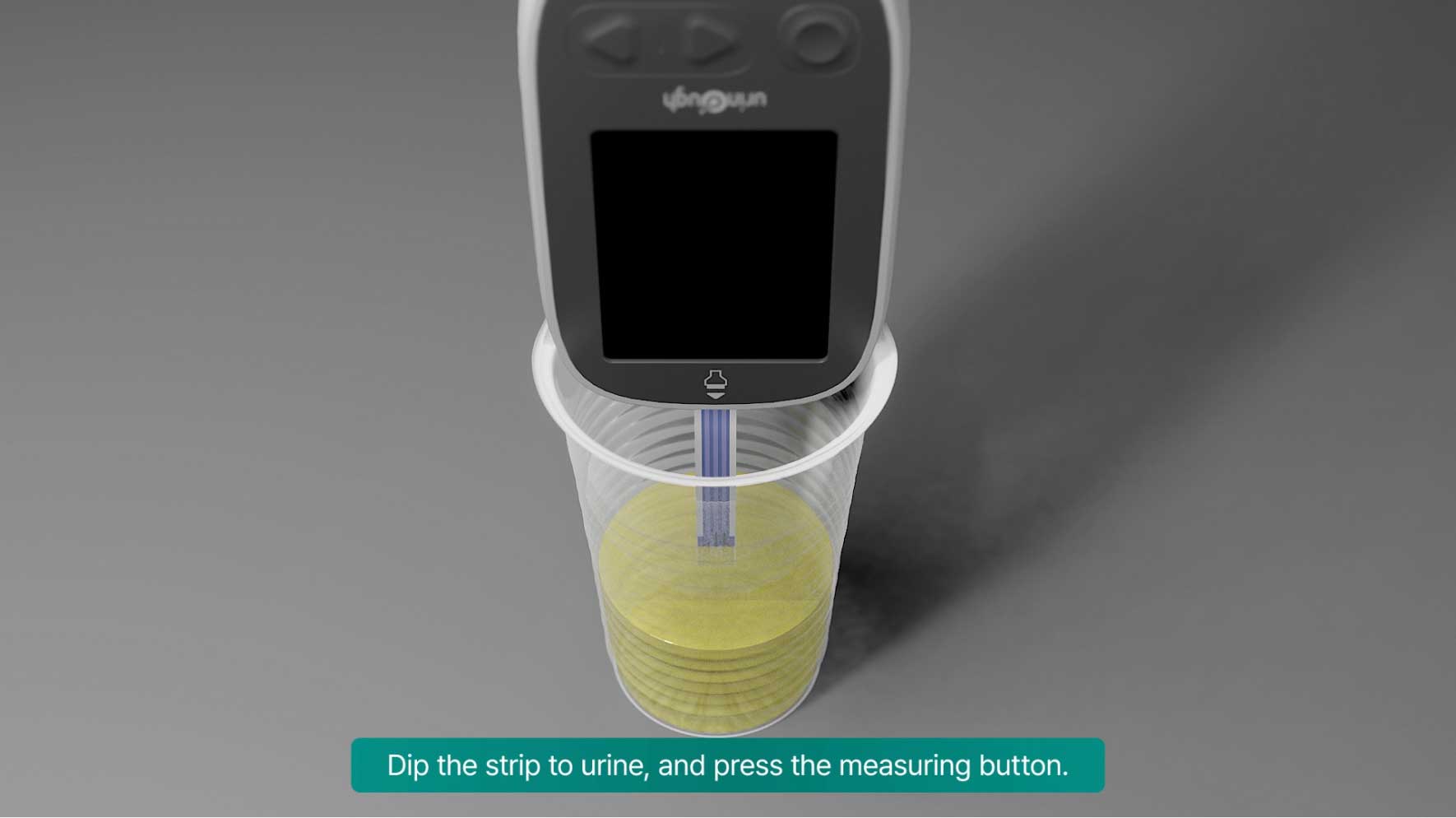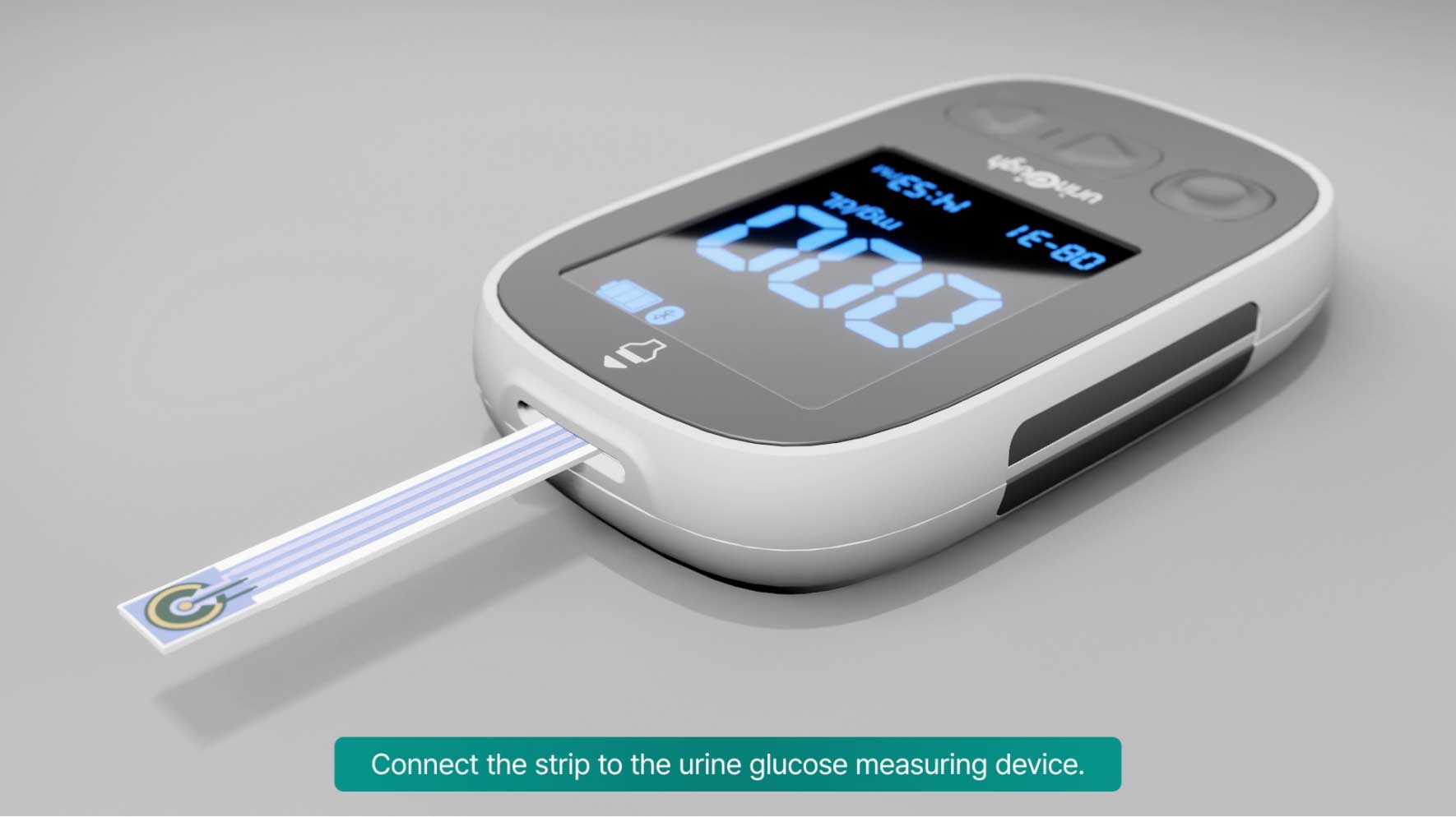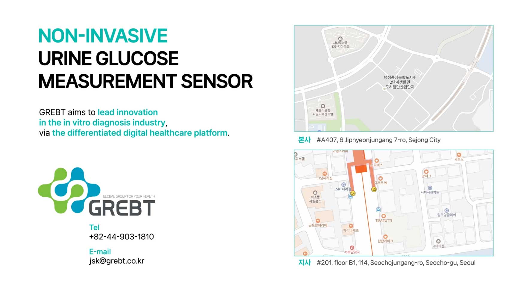 (주)그레비티 유리너프는 요당측정기로 채혈없이 신체 진단을 할 수 있다. 3D모델링을 통해 제품의 외형을 보여주면서 기기의 특징인 간단한 사용방법을 소개한다. 아이콘을 사용하여 기기의 주요 특징을 요약하였다. CI의 애니메이션 아이덴티티가 존재하지 않아, 그 형태를 해석해 세포의 분열로 표현하였다.