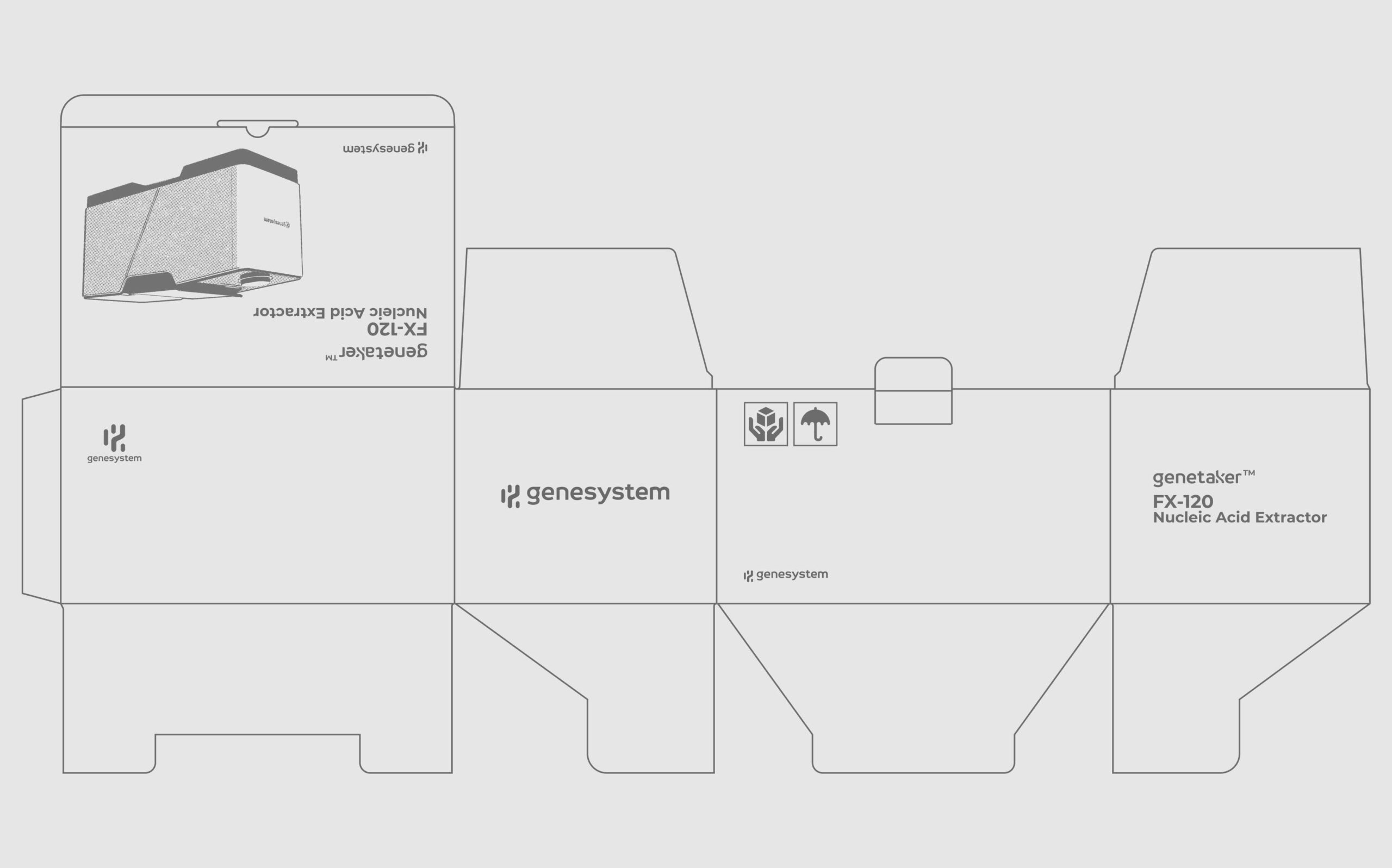 (주)진시스템의 핵산 추출기 FX-120의 박스 패키지 디자인