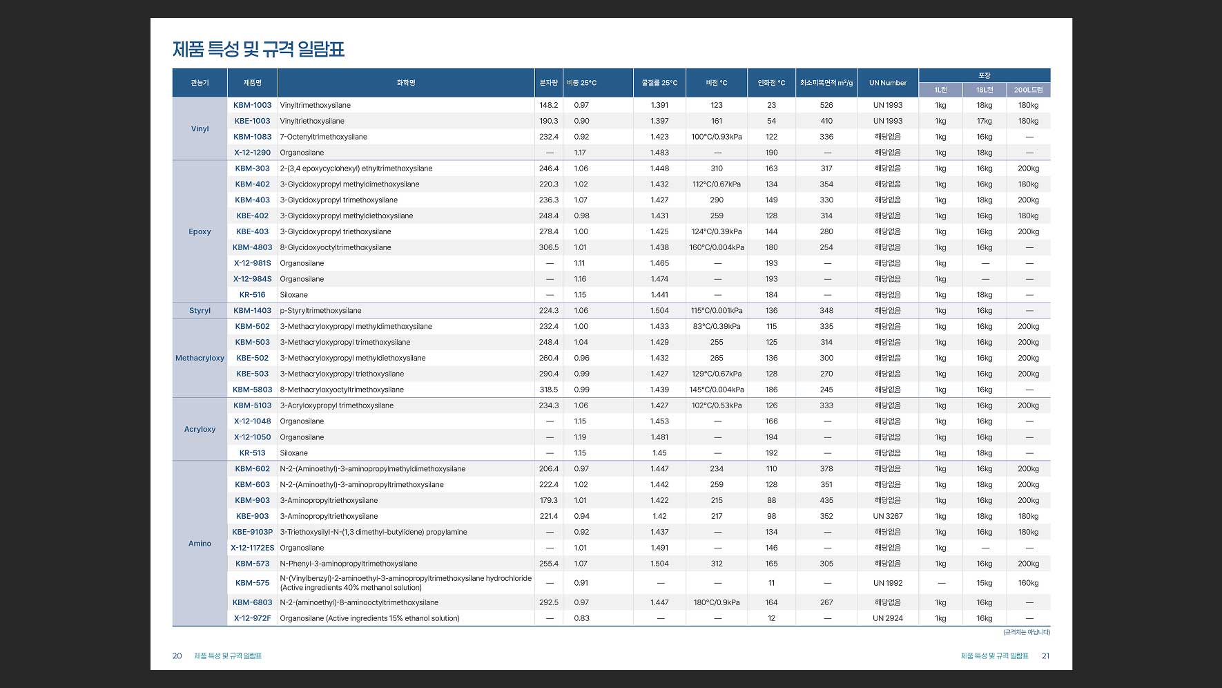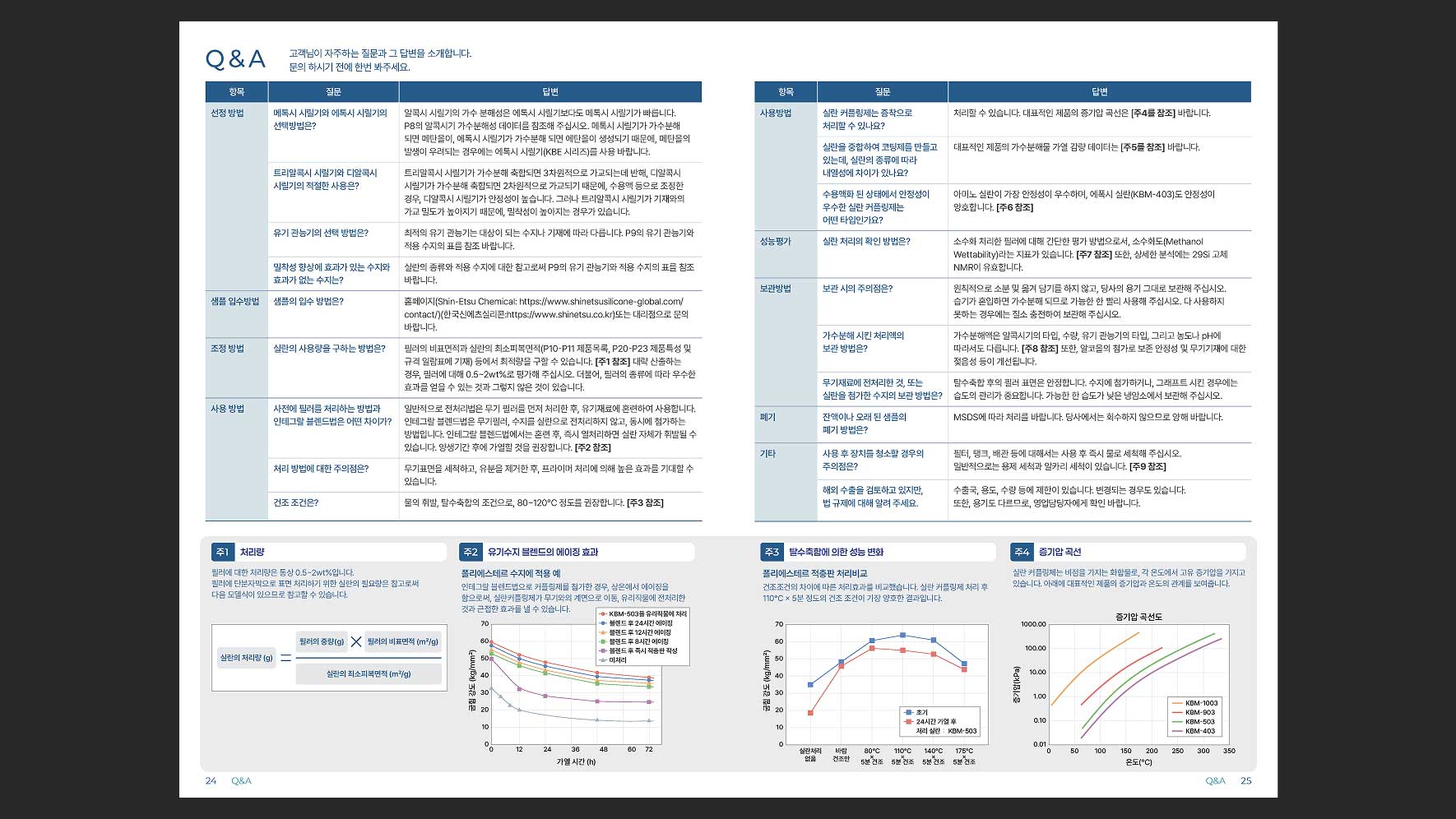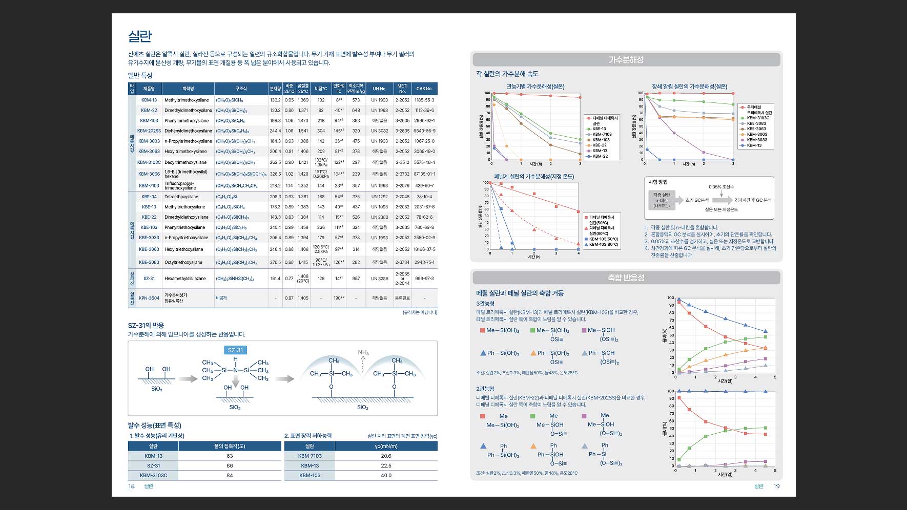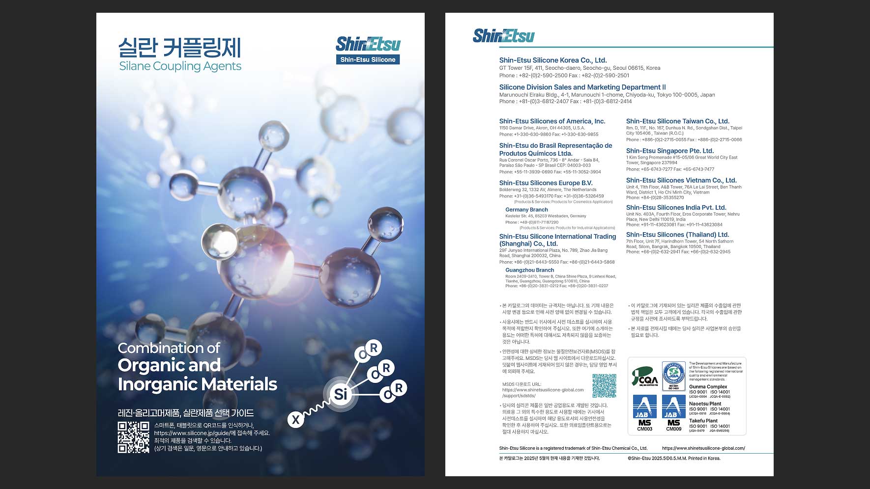 한국신에츠실리콘(주)의 제품 중 하나인 Silane Coupling Agents를 소개하는 브로셔의 디자인