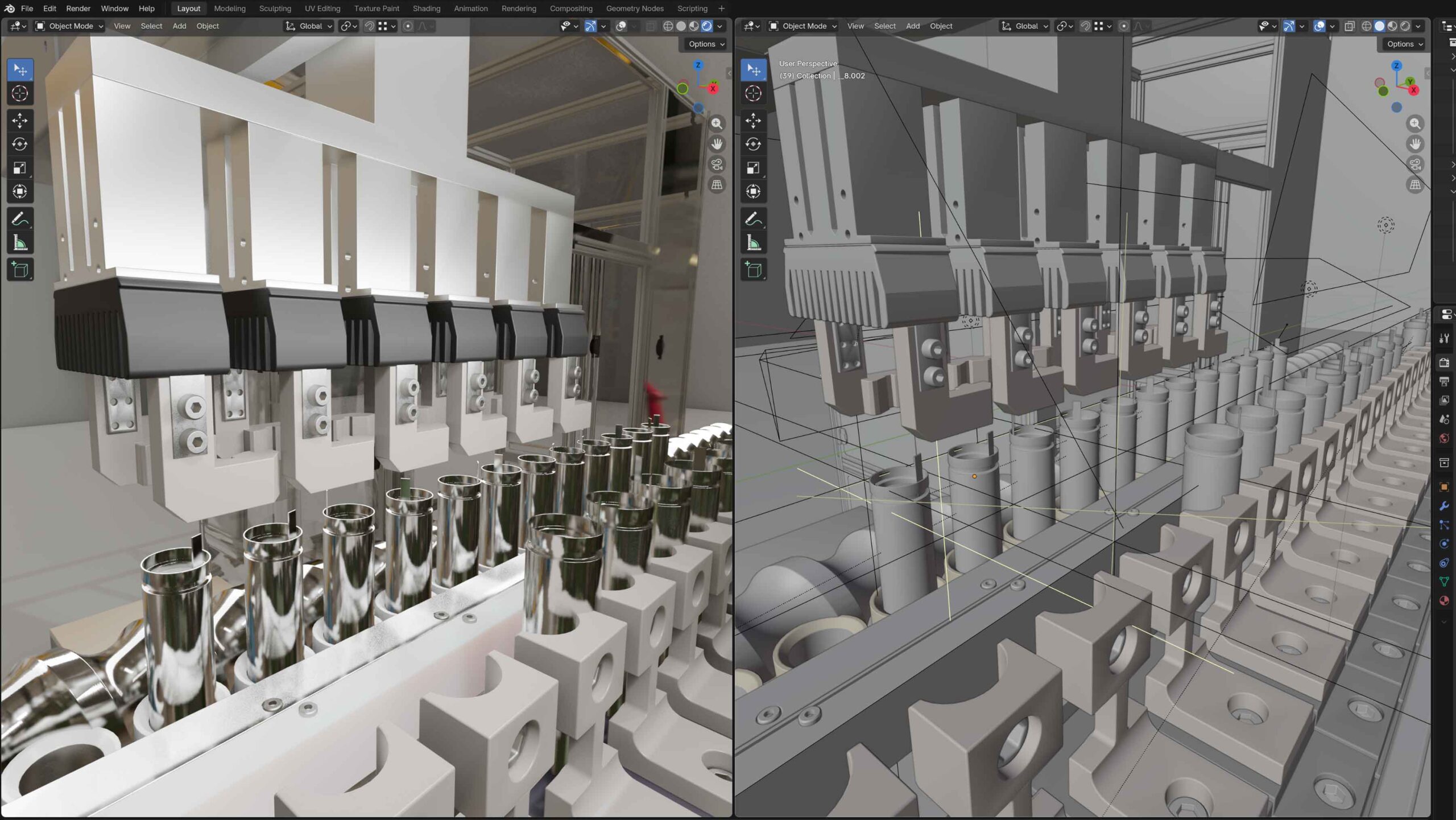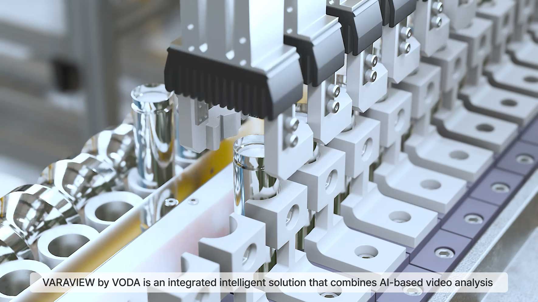 본 프로젝트는 산업 제조 현장의 설비 진단 및 개선을 위한 AI 기반 솔루션인 (주)보다 VARAVIEW의 복잡하고 전문적인 기능을 명료하고 신뢰감 있게 전달하는 것을 목표로 했습니다. 제조 공정의 정상 동작 상태와 이상 발생 시의 변화 패턴을 시각적으로 명확히 보여주는 데 중점을 두었으며, 적합한 예시로 소형 배터리 셀 제작 공정을 3D로 재현하였습니다. 3D 그래픽은 Blender로 제작, 정밀하고 사실적인 디테일을 표현했습니다. '데이터의 흐름(Data Flow)'과 '실시간 모니터링(Real-time Monitoring)'을 중심으로, 보이지 않는 AI 분석 과정을 시각적으로 구현하여 솔루션의 혁신성을 강조했습니다. 첨단 기술 기반 솔루션의 분위기를 조성을 위해, 블루 계열의 정제된 색상과 와이어프레임(Wireframe), HUD (Head-Up Display) 스타일의 인포그래픽 모션을 적극적으로 활용하여 전문성과 미래지향적인 느낌을 부여했습니다.
