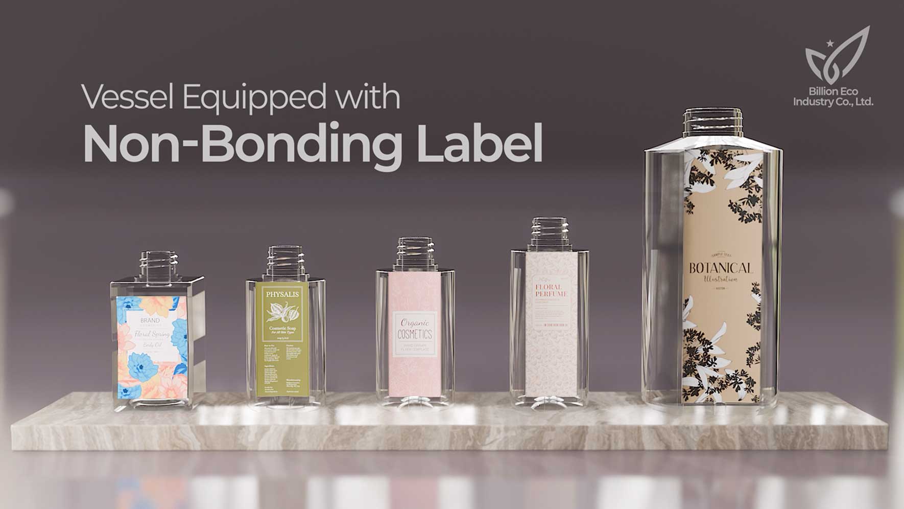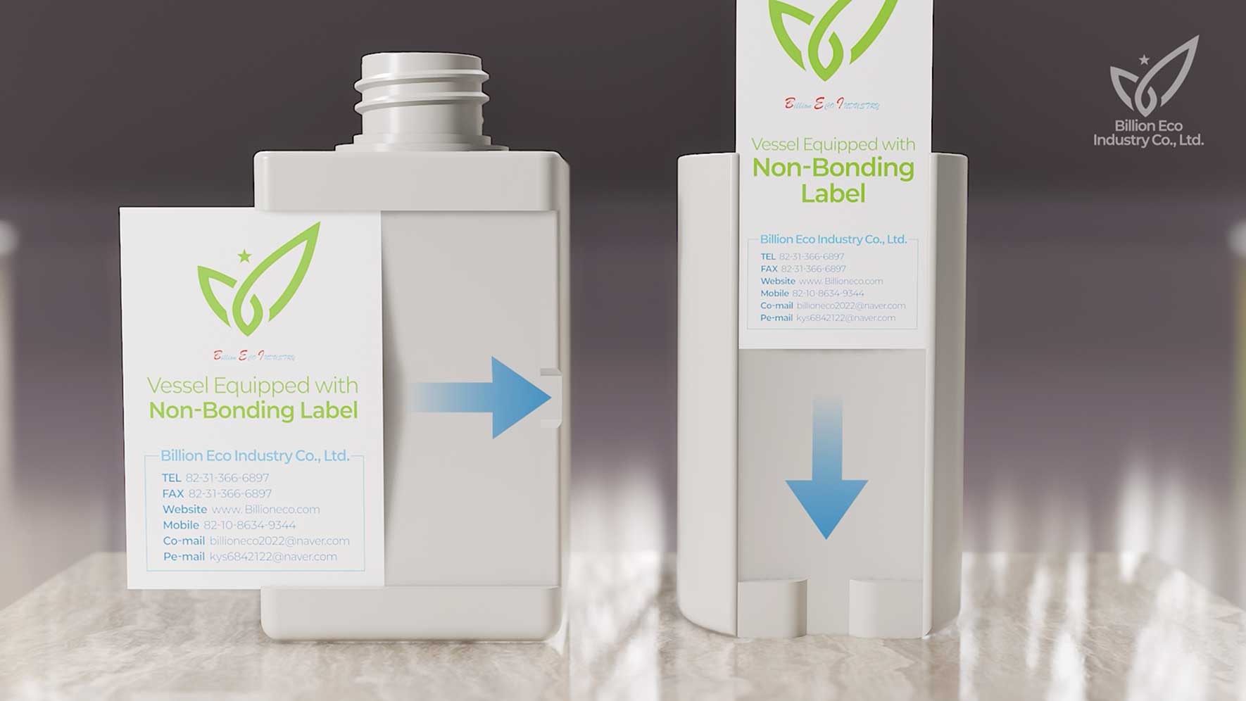 일반적으로 플라스틱 용기에 라벨(Label)을 부착할 때, 비닐로 감싸 열로 접착하거나 접착제를 사용합니다. Non-Bonding Label 용기는 종이나 PET재질의 인쇄물을 접착하지 않고 끼워넣어 고정하는 방식입니다. 빌리언에코산업은 이 방식의 특허를 취득하고, 이를 홍보 및 설명하는 영상의 제작을 의뢰하였습니다. 영상은 논본딩 라벨의 기본적인 원리를 설명하고 다양한 용기 형태와 레이블의 디자인을 적용한 예시를 보여주는 흐름으로 구성하였습니다.