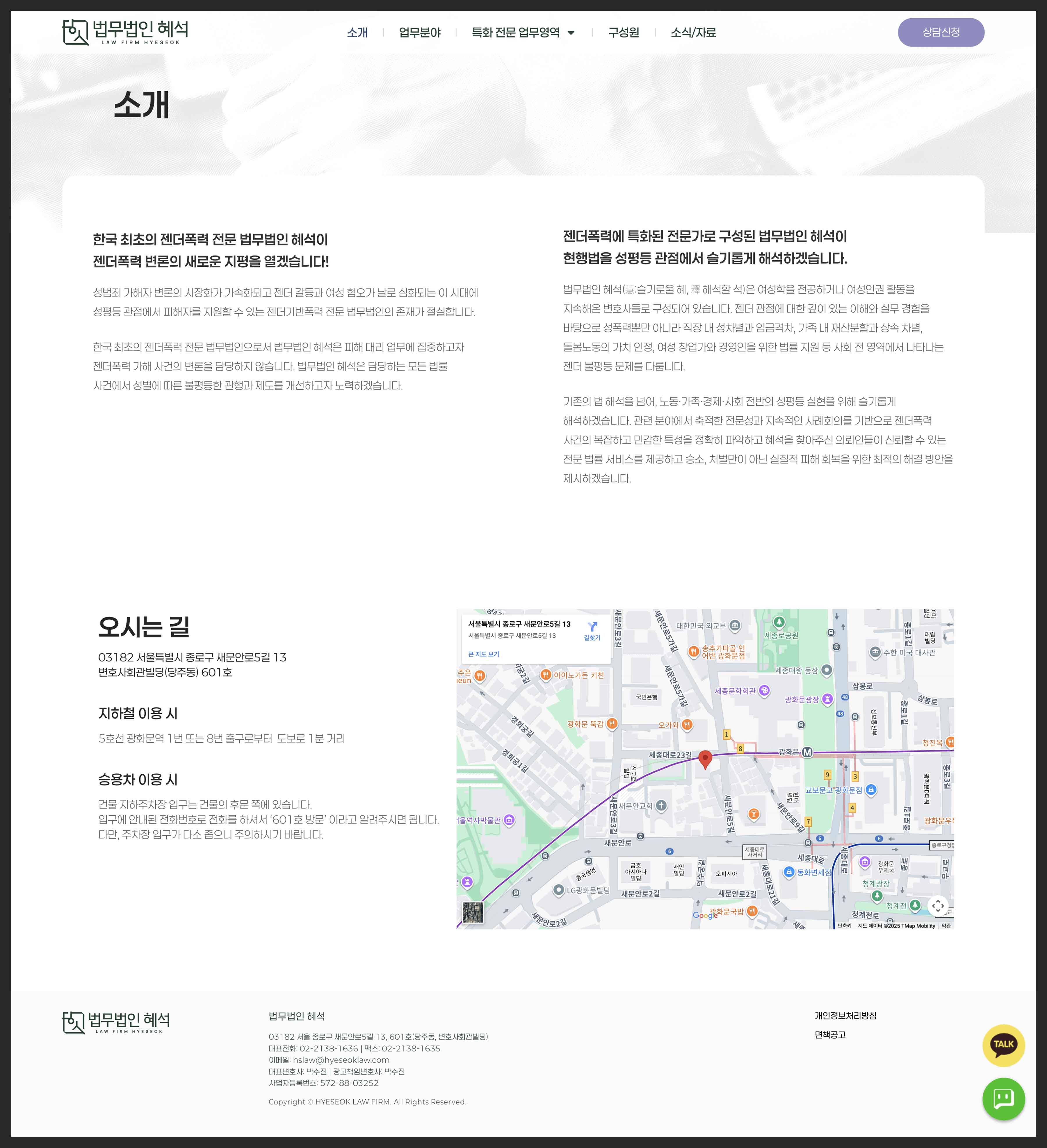 국내 유일 젠더폭력 전문 로펌, 법무법인 혜석의 웹사이트 제작