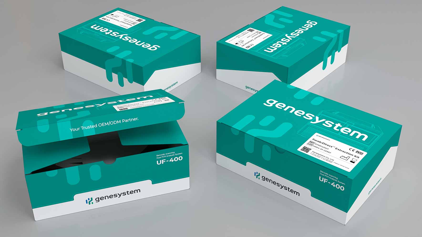 분자진단 솔루션 기업 ‘진시스템’의 UF-400 장비 전용 카트리지 및 소모품을 담는 박스 패키지입니다. 2가지 메인 시안을 구성하고, 클라이언트의 피드백을 통해 총 6가지로 변화를 주었습니다.