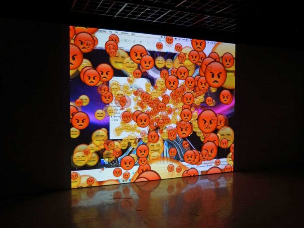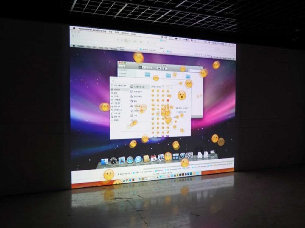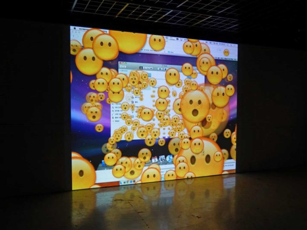 ‘음성에 반응하는 컴퓨터’에 초점을 맞추어 의미의 전달 매체인 소리에 컴퓨터가 반응할 수 있는 가능성을 생각했다. 소셜네트워크에서 많이 사용되는 이모티콘(이모지)은 자세한 설명없이 직관적으로 의미전달이 가능하다. 컴퓨터는 소리에 따라 이모지의 표정으로 응답한다. 우리가 외국어 의사소통 능력이 부족할 때 만국공통으로 통용될 수 있는 것은 표정(제스쳐)이다.